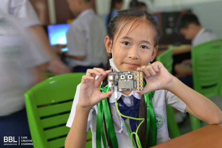 “KidBright” สื่อสอน Coding ที่ทางโรงเรียนใบบุญลำพูนนำมาสอนนักเรียน โดยเด็ก ๆ จะสามารถสร้างชุดคำสั่งได้เพียงลากบล็อกคำสั่งที่ต้องการมาเรียงต่อกันผ่านโปรแกรม KidBright IDE ซึ่งในวันนี้นักเรียนระดับชั้น ป.4/4 SMP ได้เรียนในเรื่อง “นักดนตรีน้อย” โดยการสร้างเสียงโน้ตดนตรีด้วยบัซเซอร์เสียง ที่มีอยู่บนบอร์ด KidBright เด็ก ๆ ได้สนุกกับเสียง แสง การเคลื่อนไหว