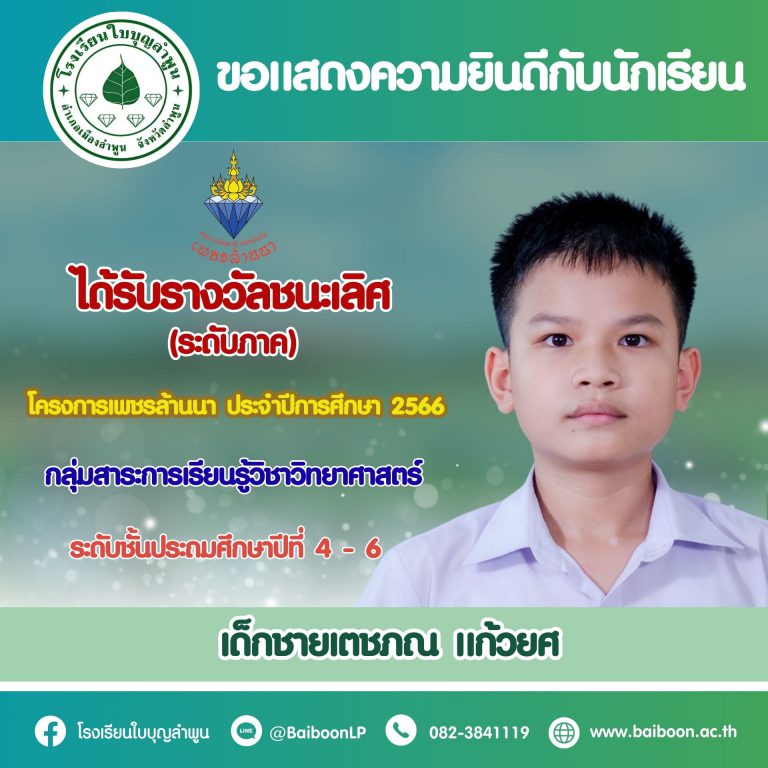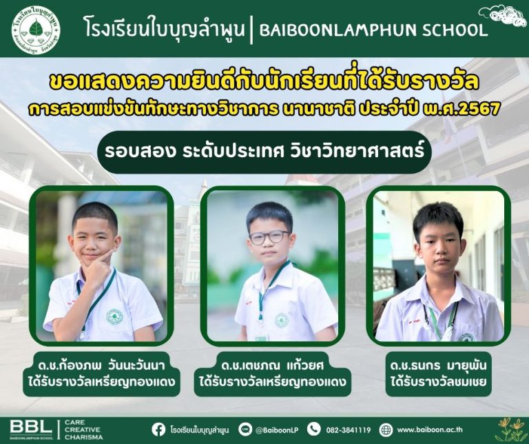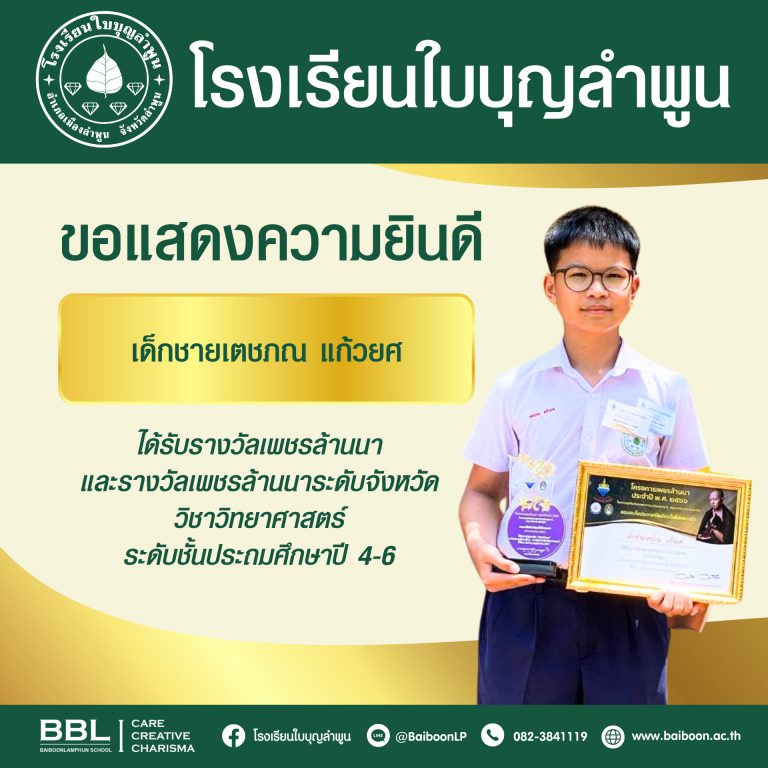 โรงเรียนใบบุญลำพูนขอแสดงความยินดีกับนักเรียนที่ได้เข้าร่วมการแข่งขันเทควันโด รายการแข่งขัน JAMPHA CHAMPIONSHIP 2024 BY BAILE TAEKWONDO LAMPHUN ครั้งที่ 5เมื่อวันเสาร์ที่ 22 มิถุนายน 2567 ณ ศูนย์การค้า Jampha Shopping Mall Lamphun ซึ่งได้รับรางวัลดังนี้- เด็กหญิงกวินตรา คำตา ป.6/6 สังกัด : สโมสร H.M.A.เทควันโด ลำพูนได้รับรางวัลรองชนะเลิศ อันดับ 2 กีฬาเทควันโด Kyorugi Class A ประเภทยุวชน หญิงเดี่ยว รุ่นอายุ 11-12 ปี…