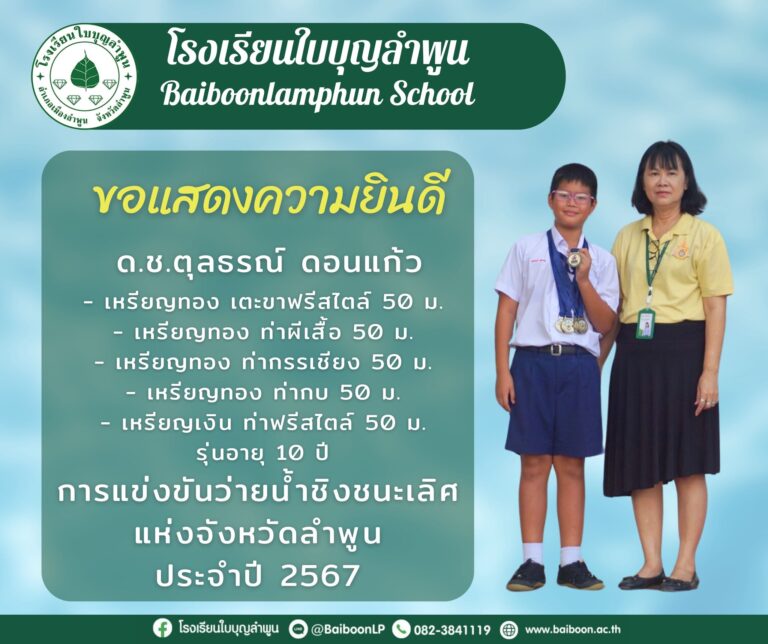 โรงเรียนใบบุญลำพูนโดยนางบุปผา มีแจ้ หัวหน้ากลุ่มสาระฯภาษาต่างประเทศ ได้นำนักเรียนเข้าร่วมการแข่งขัน” Rotary Spelling Bee Contest 2024″ จัดโดยสโมสรโรตารีนครหริภุญชัย ภาค 3360 โรตารีสากล ซึ่งผลการแข่งขันมีรายละเอียดดังนี้1. เด็กหญิงพนิตพิชา คำมูลใจ ได้รับรางวัลรองชนะเลิศอันดับที่ 1 ได้รับประกาศนียบัตรพร้อมเงินรางวัล 2,000 บาท2. เด็กชายรฐนนท์ มิ่งขวัญใจ ได้รับรางวัลชมเชย ได้รับประกาศนียบัตรพร้อมเงินรางวัล 500 บาท________________________”เพราะใบบุญ เราดูแลเหมือนแม่คนที่ 2″#รับสมัครนักเรียนใหม่ตอ. – อนุบาล – ประถมสมัครเข้าเรียนช่องทางออนไลน์ได้ที่ลิ้งค์ : รือสมัครที่โรงเรียน ห้องธุรการ อาคารเพชรใบบุญสอบถามเพิ่มเติม โทร 053-512274 หรือ…