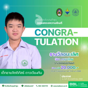 โรงเรียนใบบุญลำพูน ขอแสดงความยินดีกับนักเรียนที่ผ่านการคัดเลือกเข้าสู่การแข่งขัน “โครงการเพชรล้านนา” รอบที่ 3 (รอบเพชรล้านนา และ รอบเพชรจังหวัด) เพื่อชิงทุนการศึกษาสำหรับนักเรียนในภาคเหนือซึ่งเป็นโครงการที่มุ่งส่งเสริมและพัฒนาศักยภาพของนักเรียนให้มีความเป็นเลิศทางวิชาการ ✨ รายชื่อนักเรียนที่ผ่านการคัดเลือก🔹 รอบเพชรล้านนา🏆 รางวัลชนะเลิศ กลุ่มสาระวิชาภาษาไทย —